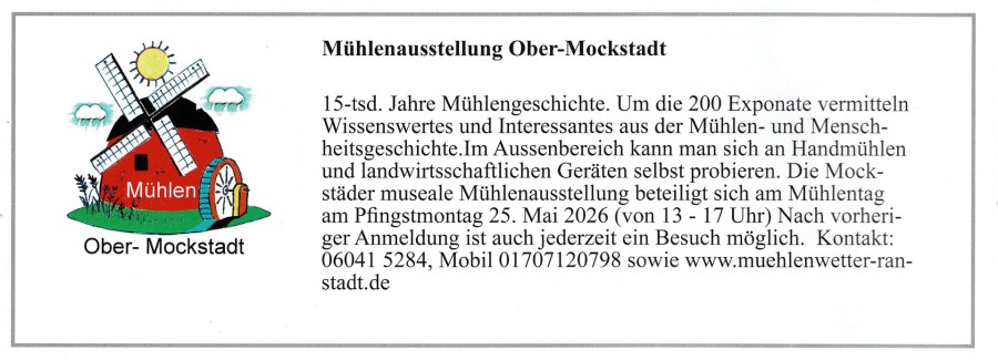 Hallo, eine wichtige Info für alle unsere Freunde, Gönner und Mühlenmodell- Interessierte: