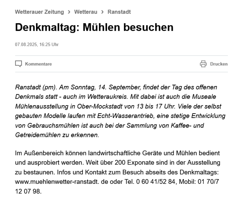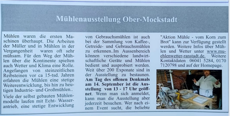 Zu den Mühlen und - Mühlenmodell- Ausstellungen in Ober- Mockstadt